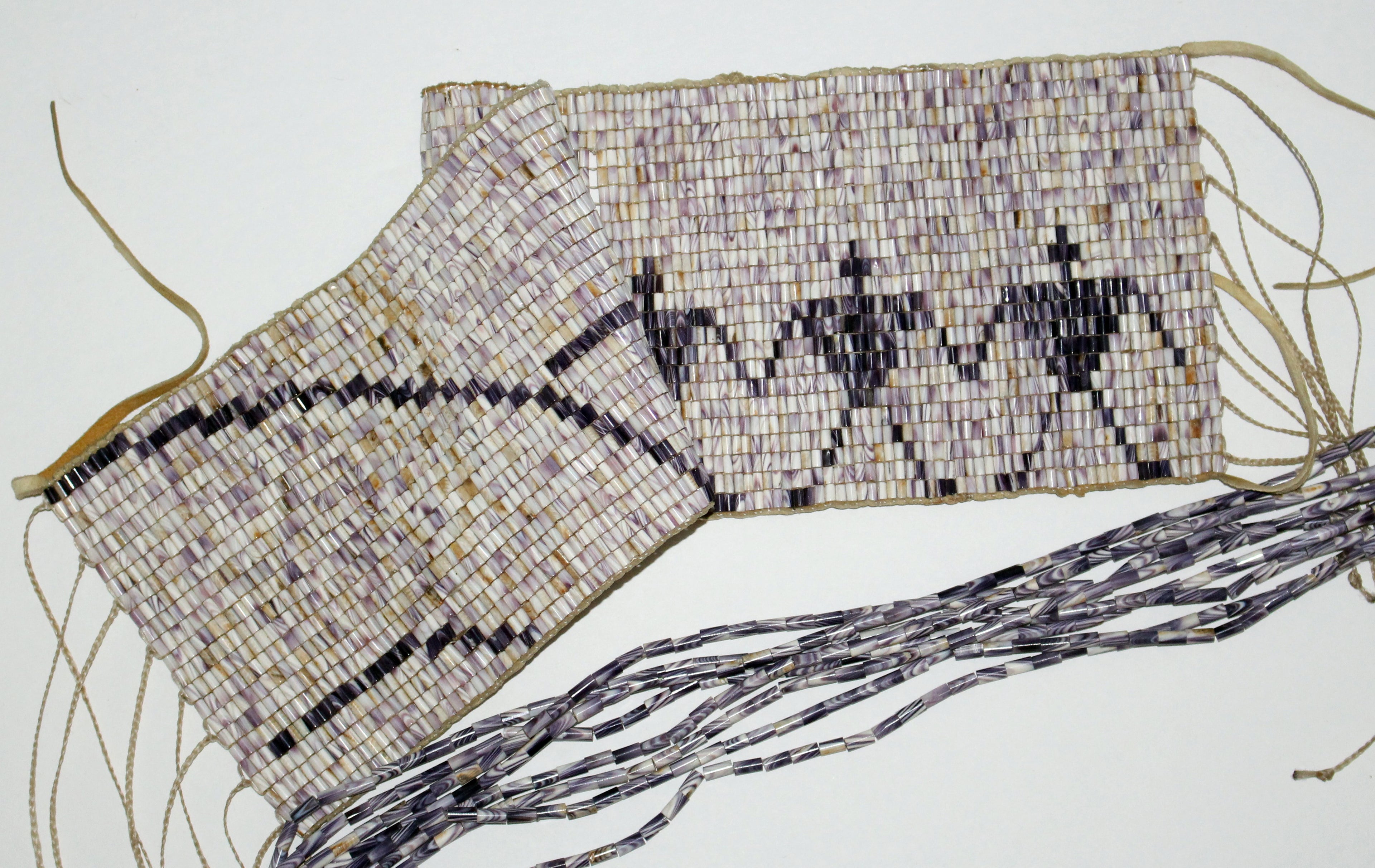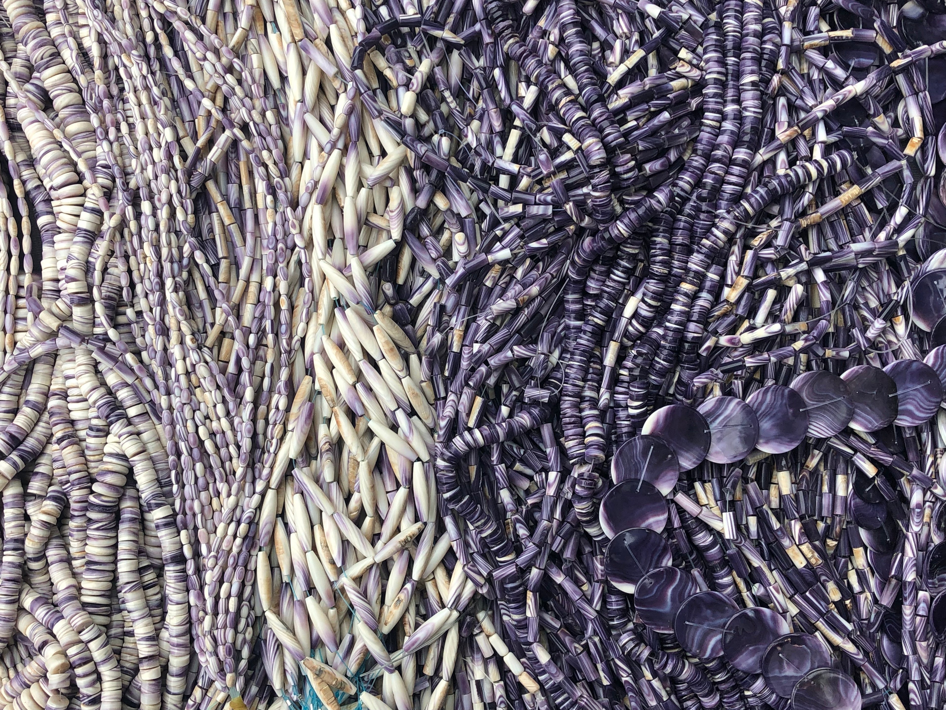 Lydia A W-Chavez, a member of the Unkechaug Nation, is known for her wampum belts and weaving both traditional and contemporary styles.